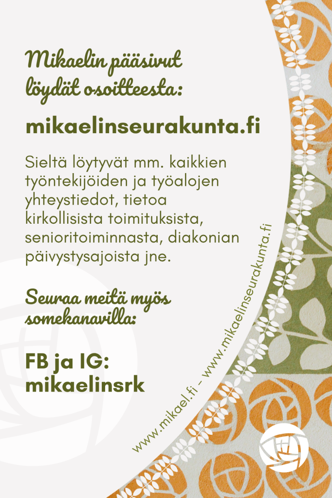 Mikael seurakuntayhtymän tapahtumakalenterissa. Linkki avautuu uuteen ikkunaan.